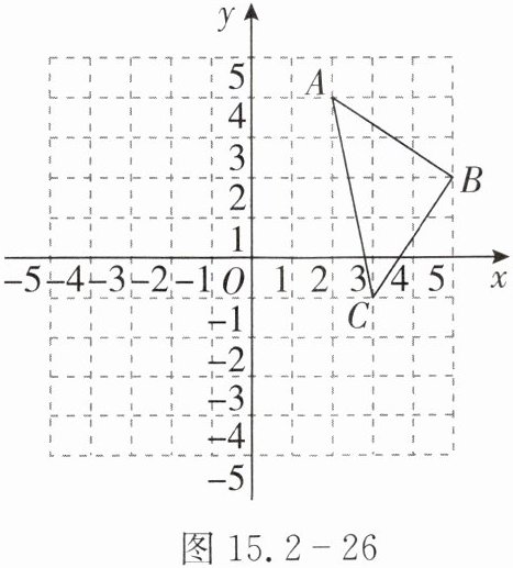 17. 在 $ 10 × 10 $ 的网格中建立如图15.2-26所示的直角坐标系,规定在网格内(包括边界),横,纵坐标都是整数的点称为格点,已知$\triangle ABC$的三个顶点都是格点.