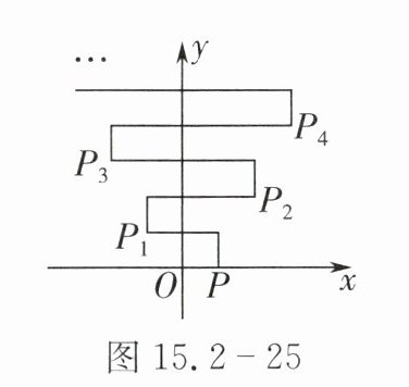 16. 如图15.2-25,已知点 $ P $ 的坐标为$(1,0)$,将点 $ P $ 向上平移1个单位长度后作其关于 $ y $ 轴的对称点 $ P_1 $;将点 $ P_1 $ 向上平移1个单位长度后作其关于 $ y $ 轴的对称点,再向右平移1个单位长度得到点 $ P_2 $;将点 $ P_2 $ 向上平移1个单位长度后作其关于 $ y $ 轴的对称点 $ P_3 $;将点 $ P_3 $ 向上平移1个单位长度后作其关于 $ y $ 轴的对称点,再向右平移1个单位长度得到点 $ P_4 \cdots $ 按此方式操作下去,则点 $ P_{2025} $ 的坐标为