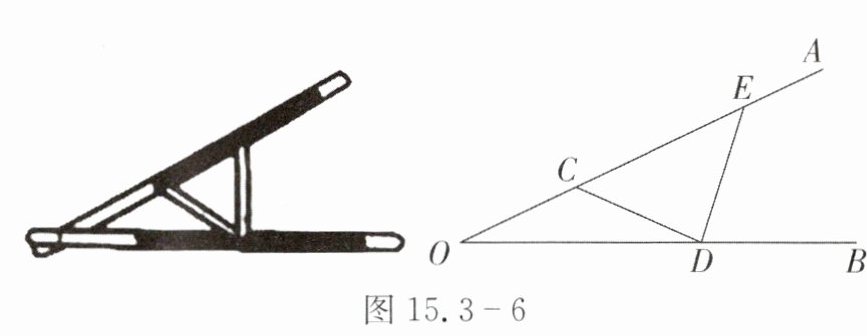 8. “三等分角”大约是在公元前五世纪由古希腊人提出来的,借助如图15.3-6所示的“三等分角仪”能三等分任一角. 这个三等分角仪由两根有槽的棒$OA$,$OB$组成,两根棒在$O$点相连并可绕$O$转动,$C$点固定,$OC = CD = DE$,点$D$,$E$可在槽中滑动. 若$\angle BDE = 75^{\circ}$,则$\angle CDE$的度数是