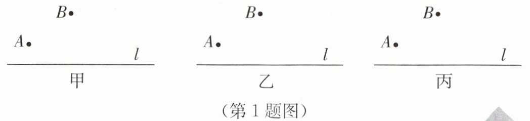 1. 如图,已知 $ A $,$ B $ 两点在直线 $ l $ 的同一侧,根据题意,用尺规作图.