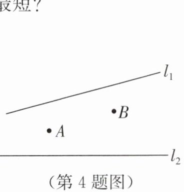 4. 如图,为了做好交通安全工作,某交警执勤小队从点 $ A $ 处出发,先到公路 $ l_1 $ 上设卡检查,再到公路 $ l_2 $ 上设卡检查,最后到点 $ B $ 处执行任务,他们应如何走才能使总路程最短?