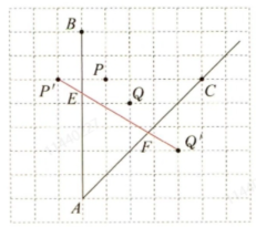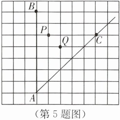 5. 如图,在边长为 1 个单位长度的小正方形组成的网格中,请分别在边 $ AB $,$ AC $ 上找到点 $ E $,$ F $,使四边形 $ PEFQ $ 的周长最小.