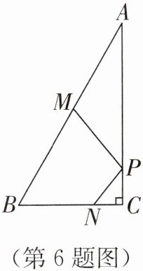 6. 如图,在 $ Rt \triangle ABC $ 中,$ \angle C = 90^{\circ} $,$ \angle A = 30^{\circ} $,点 $ N $ 在边 $ BC $ 上,且 $ BN = 6 $,点 $ M $,$ P $ 分别是边 $ AB $,$ AC $ 上的动点,当 $ PM + PN $ 最小时,$ BM = 5 $,则 $ AB $ 长为(