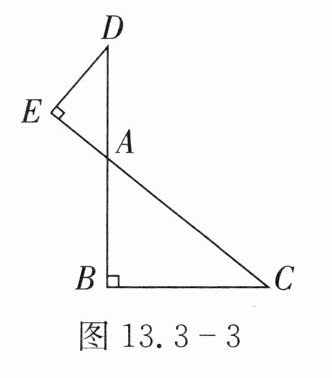 4. 如图 13.3 - 3,已知$DB$,$EC$交于点$A$,$\angle B = \angle E = 90^{\circ}$,$\angle C = 39^{\circ}$,则$\angle D$的度数为