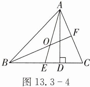 5. 如图 13.3 - 4,在$\triangle ABC$中,$AD$是高线,$AE$、$BF$是角平分线,它们相交于点$O$,$\angle BAC = 50^{\circ}$,$\angle C = 70^{\circ}$,求$\angle EAD$的度数.