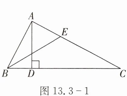 2. 如图 13.3 - 1,在$\triangle ABC$中,$\angle BAC = 90^{\circ}$,$AD \perp BC$于点$D$,$BE$平分$\angle ABC$,交$AC$于点$E$.若$\angle BAD = 34^{\circ}$,则$\angle AEB$的度数为(