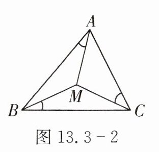3. 如图 13.3 - 2,$\triangle ABC$中,$BM$,$CM$分别平分$\angle ABC$,$\angle ACB$,连接$AM$.已知$\angle MBC = 25^{\circ}$,$\angle MCA = 30^{\circ}$,则$\angle MAB =$