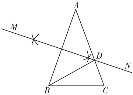 (1)作边$AB$的垂直平分线$MN$,交$AC$于点$D$;(保留作图痕迹,不写作法)