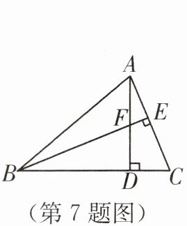 7. 如图,在 $ \triangle ABC $ 中,$ AD \perp BC $ 于 $ D $,$ BE \perp AC $ 于 $ E $,$ AD $ 与 $ BE $ 相交于 $ F $。若 $ BF = AC $,那么 $ \angle ABC $ 的大小是(