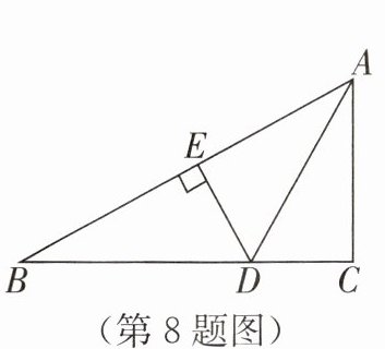 8. 如图,在 $ Rt \triangle ABC $ 中,$ \angle C = 90^{\circ} $,$ \angle CAB $ 的平分线交 $ BC $ 于 $ D $,$ DE $ 是 $ AB $ 的垂直平分线,垂足为 $ E $。若 $ BC = 3 $,则 $ DE $ 的长为(