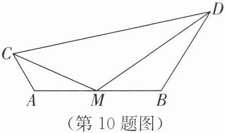 10. 如图,点 $ C $,$ D $ 在线段 $ AB $ 的同侧,$ CA = 4 $,$ AB = 12 $,$ BD = 9 $,$ M $ 是 $ AB $ 的中点,$ \angle CMD = 120^{\circ} $,则 $ CD $ 长的最大值是(