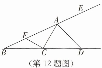 12. 如图,已知 $ AD $ 是 $ \triangle ABC $ 的外角平分线,交 $ BC $ 的延长线于 $ D $,$ CF // AD $,若 $ AC = 3\ cm $,则 $ AF = $