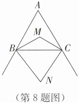 8. 如图,点M是△ABC两内角平分线的交点,点N是△ABC两外角平分线的交点,则下列说法错误的是(