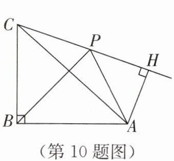 10. 如图,在等腰直角三角形ABC中,∠ABC=90°,BA=BC,将BC绕点B顺时针旋转θ(0°<θ<90°),得到BP,连接CP,过点A作AH⊥CP交CP的延长线于点H,连接AP,则∠PAH的度数(