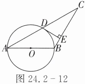 8.如图24.2-12,在△ABC中,$AB=BC$,以△ABC的边AB为直径作⊙O,交AC于点D,过点D作$DE⊥BC$,垂足为点E.求证:DE是⊙O的切线.
