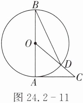 7.如图24.2-11,AB是⊙O的直径,AC是⊙O的切线,连接OC交⊙O于点D,连接BD,$∠C=40°$.则$∠ABD$的度数是(