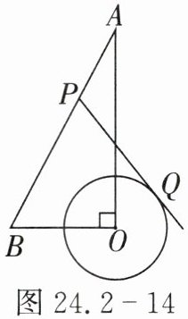 10.如图24.2-14,在Rt△AOB中,$OB=2 \sqrt{3}$,$∠A=30°$,⊙O的半径为1,点P是AB边上的动点,过点P作⊙O的一条切线PQ(其中点Q为切点),则线段PQ长度的最小值为