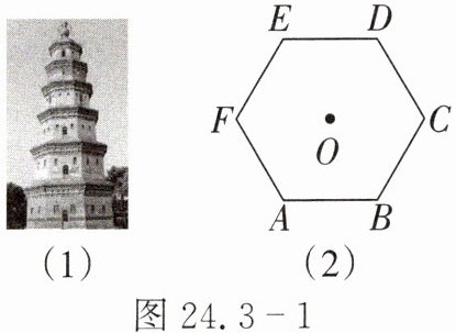 8. 如图 24.3 - 1,有一座宝塔,它的地基是周长为$24\ m$的正六边形$ABCDEF$,点$O$为中心.