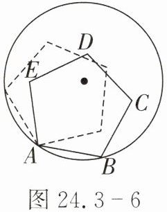 4. 如图 24.3 - 6,边长为$3$的正五边形$ABCDE$的顶点$A$,$B$在半径为$3$的圆上,其他各点在圆内,将正五边形$ABCDE$绕点$A$逆时针旋转,当点$E$第一次落在圆上时,则点$C$转过的度数为(
