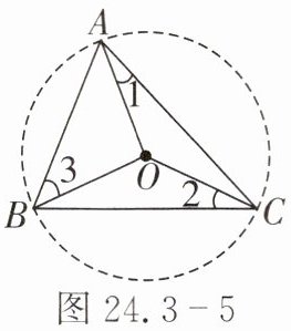 3. 如图 24.3 - 5,$O$是$\triangle ABC$的外心,则$\angle 1 + \angle 2 + \angle 3$等于(