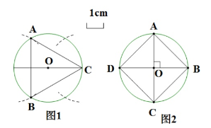 1. 分别画出半径为$2\ cm$的圆的内接正三角形和正四边形.