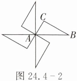 5. 如图 24.4-2,将四个三角形拼成一个风车图形,若 $AB = 2$,当风车转动 $90°$时,点 $B$ 运动路径的长度为(