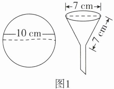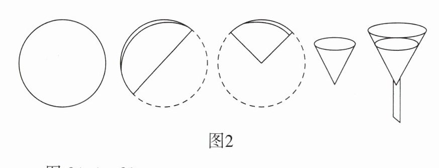 12. 如图 24.4-23,在图 1 中,①一张直径为 $10$ cm 的圆形滤纸;②一只漏斗口直径与母线均为 $7$ cm 的圆锥形过滤漏斗.