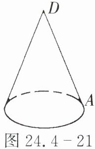 10. 如图 24.4-21,已知圆锥的底面半径为 $1$,母线长为 $4$. 一只小蚂蚁从 $A$ 点出发,绕侧面爬行一周又回到 $A$ 点,它爬行的最短路线长是(