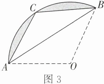 4. 如图3,扇形纸片 $AOB$ 的半径为 $3$,沿 $AB$ 折叠扇形纸片,点 $O$ 恰好落在$\overset{\frown}{AB}$上的点 $C$ 处,求图中阴影部分的面积.