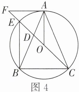 5. 如图4,已知$\triangle ABC$内接于$\odot O$,$CO$的延长线交 $AB$ 于点 $D$,交$\odot O$于点 $E$,交$\odot O$的切线 $AF$ 于点 $F$,且 $AF // BC$. 求证: