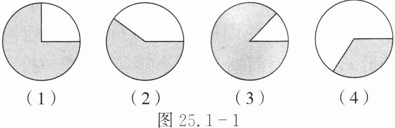8.如图25.1-1,向下面的圆盘投射飞镖,击中深色区域的可能性由小到大依次是