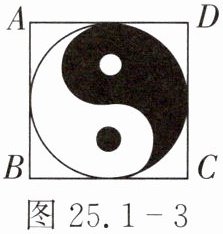 5.如图25.1-3,正方形$ABCD$内的图形来自中国古代的太极图,现随机向正方形内掷一枚小针,则针尖落在黑色区域内的概率为(