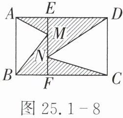 11.小江玩投掷飞镖的游戏,他设计了一个如图25.1-8所示的靶子,点$E,F$分别是矩形$ABCD$的两边$AD,BC$上的点,且$EF// AB$,点$M,N$是$EF$上任意两点,求投掷一次飞镖落在阴影部分的概率.