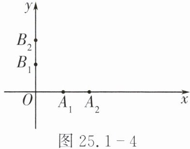 7.如图25.1-4,在平面直角坐标系中,点$A_1,A_2$在$x$轴上,点$B_1,B_2$在$y$轴上,它们的坐标分别为$A_1(1,0),A_2(2,0),B_1(0,1),B_2(0,2)$,分别以$A_1,A_2,B_1,B_2$中的任意两点与点$O$为顶点作三角形,所作三角形是等腰三角形的概率是(