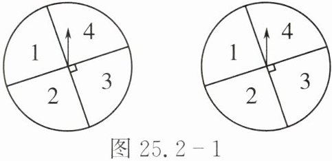 8. 自由转动图25.2 - 1中的两个转盘一次,当转盘停止转动时,两个指针分别落在某两个数所表示的区域,则这两个数的和是2的倍数或3的倍数的概率等于(