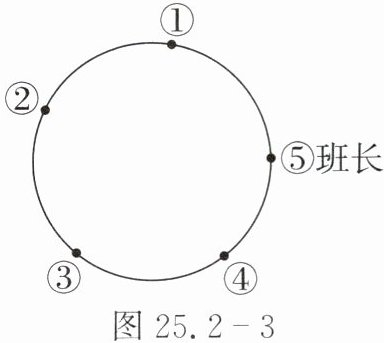 7. 班长邀请A,B,C,D四名同学参加圆桌会议.如图25.2 - 3,班长坐在⑤号座位,四名同学随机坐在①②③④四个座位,则A,B两名同学座位相邻的概率是(
