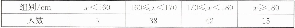5. 为了解某地区九年级男生的身高情况,随机抽取了该地区 100 名九年级男生,他们的身高$x$(单位:$ cm$)统计如下: