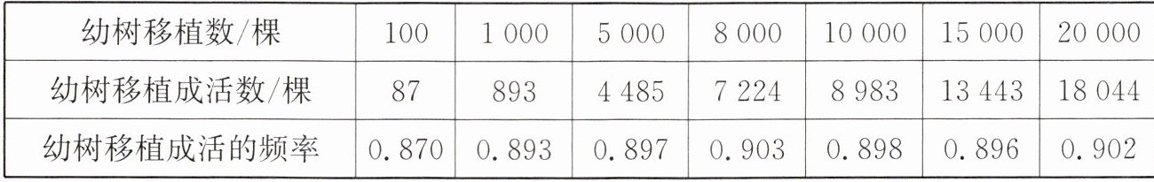 9. 某林业部门为了考察某种幼树在一定条件下的移植成活率,在同等条件下,对这种幼树进行大量移植,并统计成活情况,下表是这种幼树移植过程中的一组统计数据:
