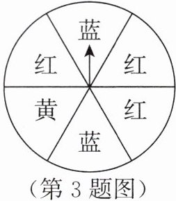 3. 如图,一个可以自由转动的转盘被等分成 6 个扇形区域,并涂上了相应的颜色,转动转盘,转盘停止后,指针指向黄色区域的概率是(