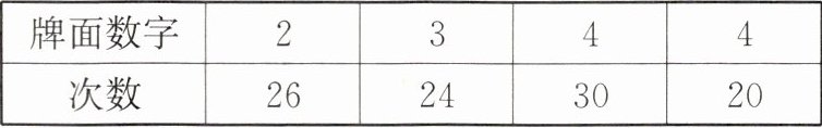 (2)若小明一次摸出两张牌,求小明摸出的两张牌的牌面数字之和为 6 的频率.