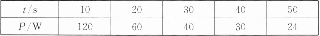 (1)由表中数据可知功率 $P( W)$ 与做功的时间 $t( s)$ 之间的函数关系式为$P=\frac{1200}{t}$。