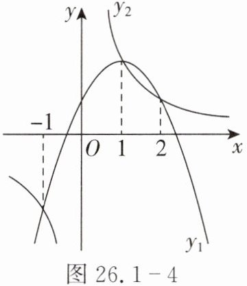 4. 函数$y_{1}=ax^{2}+bx + c$与$y_{2}=\frac{k}{x}$的图象如图26.1-4所示,当(