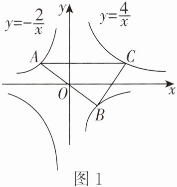 8. 如图 1,在平面直角坐标系中,函数 $ y = kx $ 与 $ y = -\frac{2}{x} $ 的图象交于 $ A,B $ 两点,过 $ A $ 作 $ y $ 轴的垂线,交函数 $ y = \frac{4}{x} $ 的图象于点 $ C $,连接 $ BC $,则 $ \triangle ABC $ 的面积为(