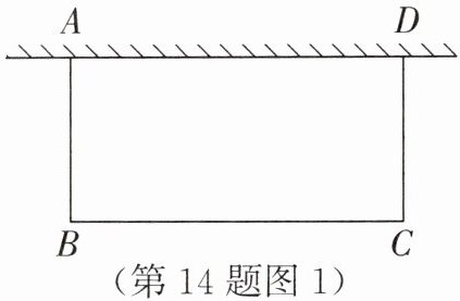 14. (16 分)如图,某兴趣小组计划开垦一个面积为$8 m^2$的矩形地块$ABCD$种植农作物,地块一边靠墙,另外三边用木栏围住,木栏总长为$a m$.