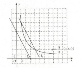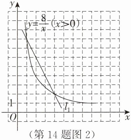 如图 2,反比例函数$y = \frac{8}{x} (x > 0)$的图象与直线$l_1: y = -2x + 10$的交点坐标为$(1, 8)$和