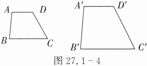 6. 如图 27.1-4,梯形 $ABCD$和梯形$A^{\prime}B^{\prime}C^{\prime}D^{\prime}$相似,$AD// BC$,$A^{\prime}D^{\prime}// B^{\prime}C^{\prime}$,$\angle A=\angle A^{\prime}$,$AD = 4$,$A^{\prime}D^{\prime}=6$,$AB = 6$,$B^{\prime}C^{\prime}=12$,$\angle C = 60^{\circ}$.