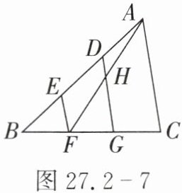 8. 如图 27.2 - 7,在$\triangle ABC$中,$D$,$E$为边$AB$的三等分点,$EF // DG // AC$,$H$为$AF$与$DG$的交点. 若$AC = 6$,则$DH =$