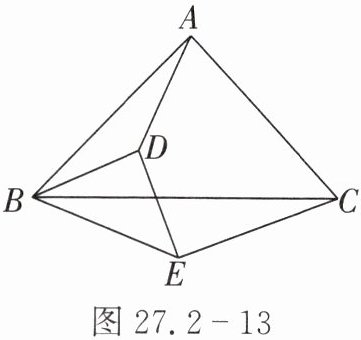 9. 如图 27.2 - 13,$\frac{AB}{DB} = \frac{BC}{BE} = \frac{AC}{DE}$,求证:$\triangle ABD \sim \triangle CBE$.