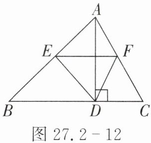 7. 如图 27.2 - 12,已知$AD$是$\triangle ABC$的高,$E$,$F$分别是$AB$,$AC$的中点. 求证:$\triangle DEF \sim \triangle ABC$.