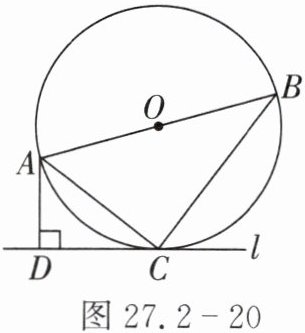 9. 如图 27.2 - 20,点$C$在以$AB$为直径的$\odot O$上,过点$C$作$\odot O$的切线$l$,过点$A$作$AD \perp l$,垂足为$D$,连接$AC$,$BC$.